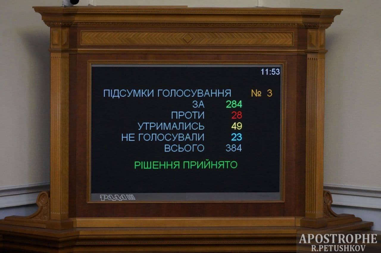 За его кандидатуру 20 мая проголосовали 284 народных депутата, сообщает корреспондент "Апострофа" из Рады.