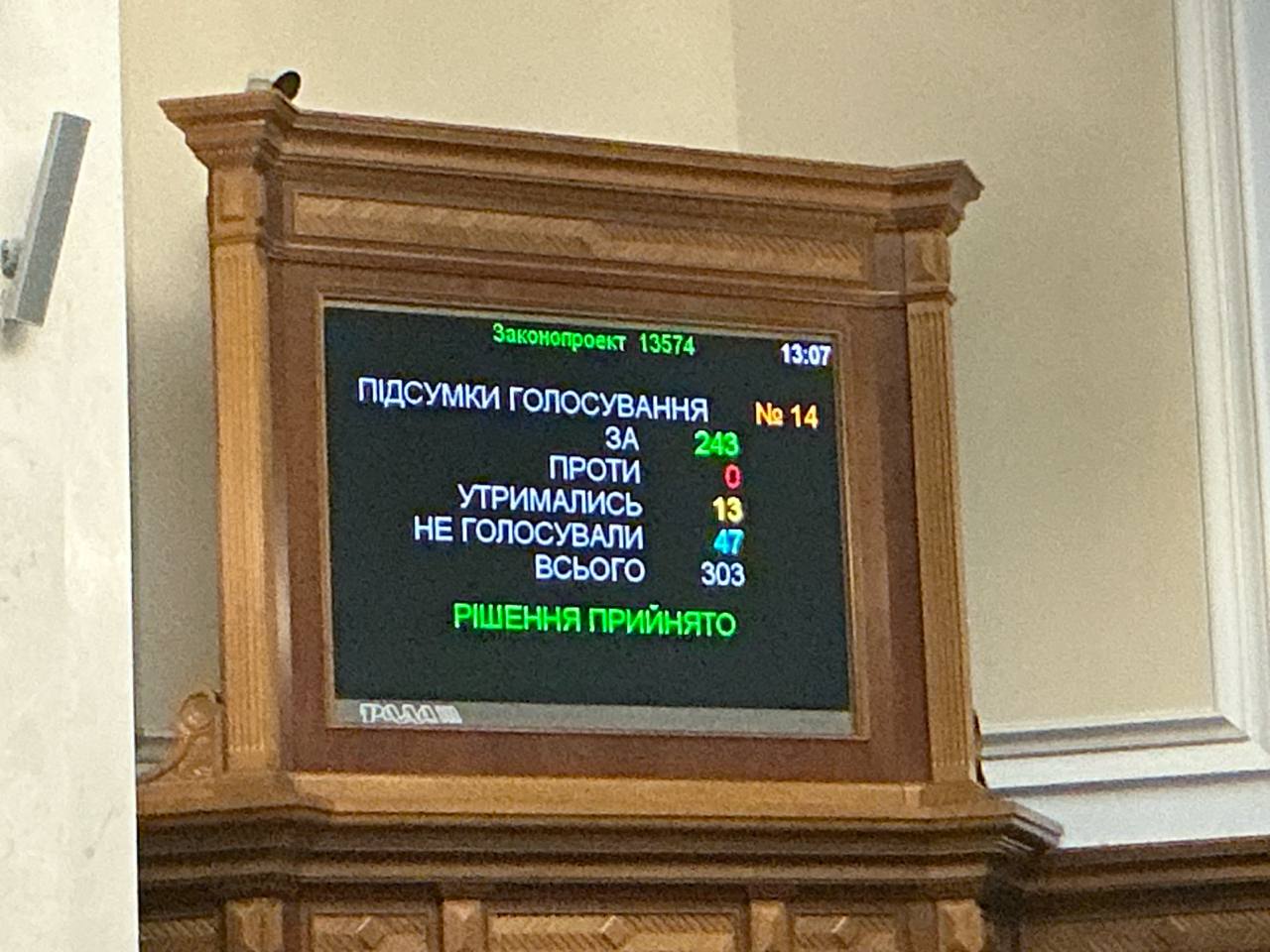 Об этом сообщает «Апостроф», ссылаясь на результаты голосования в парламенте, которые опубликовал нардеп Ярослав Железняк.