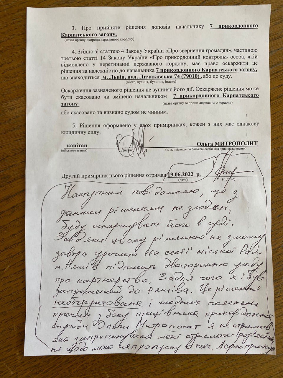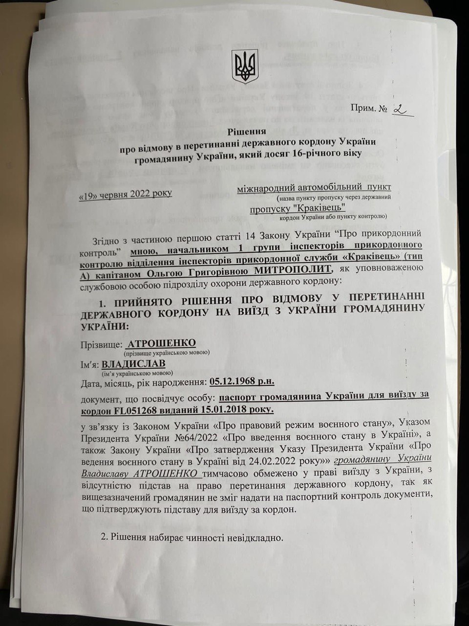 "Замечу: вопросы по документам возникли только по отношению ко мне, хотя на руках у меня был полный пакет документов, позволяющих пересекать границу в служебных целях. Как и у каждого члена нашей делегации. Однако таможенный инспектор Лилия Турко, жетон LV-1155, изъяла мои документы без объяснения причин и предложила мне поговорить с начальством", – сообщил Атрошенко.