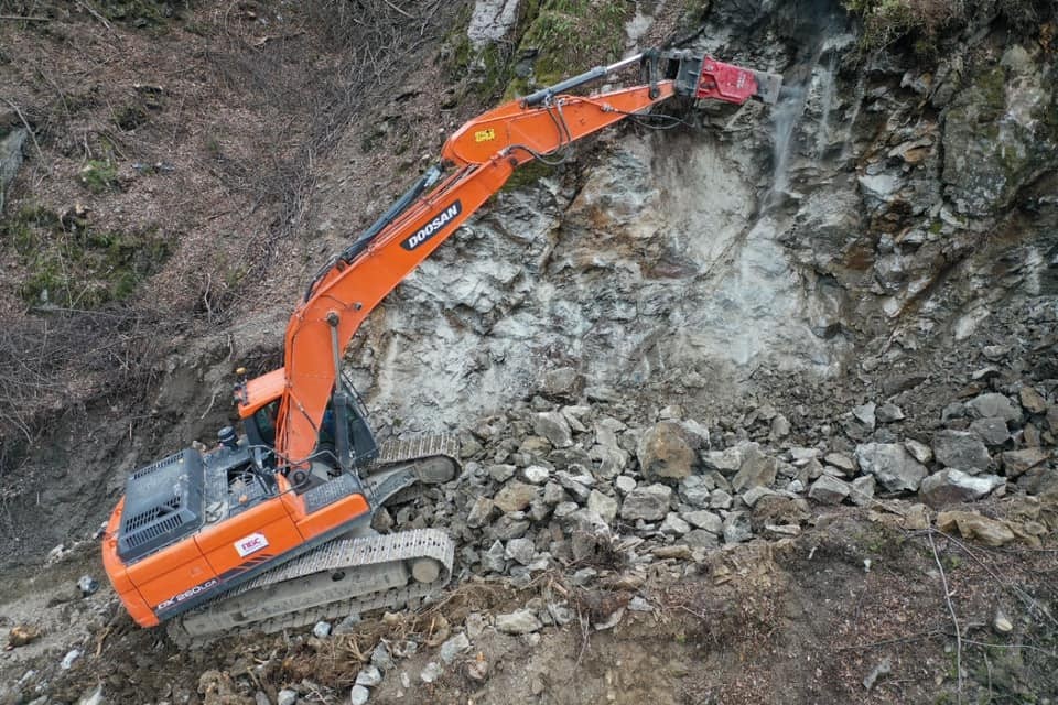 Подобные работы необходимы для расширения дороги - после разборки скалы дорожное полотно на данном участке можно будет расширить до 8 метров.