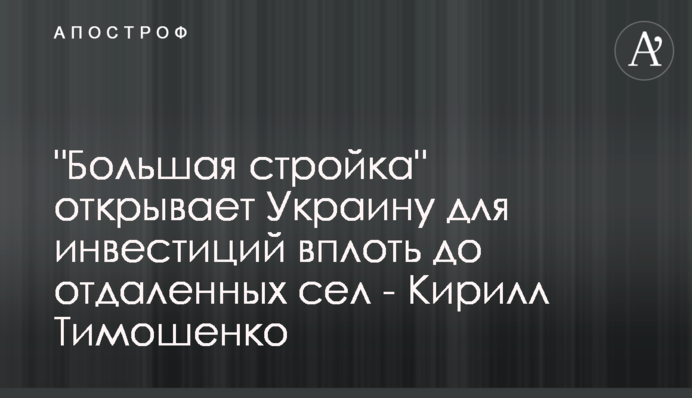 "Через качественную инфраструктуру Украина открывается миру. Одна из задач "Большой стройки" - открыть для инвестиций не только крупные города, но и маленькие районные центры или села", - сказал Тимошенко.