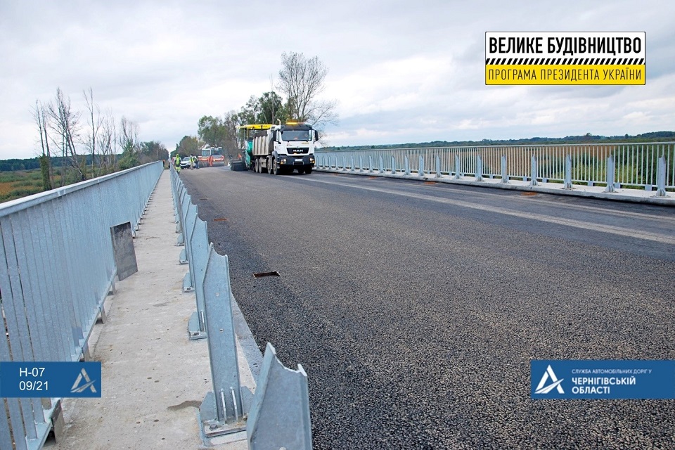 Стартовало асфальтирование нового моста через реку Удай, построенного по программе Президента Владимира Зеленского "Большая стройка" возле города Прилуки на автомобильной дороге Н-07 Киев - Сумы - Юнаковка. Новое сооружение построили на месте старой переправы, сообщила в Facebook Служба автомобильных дорог в Черниговской области.