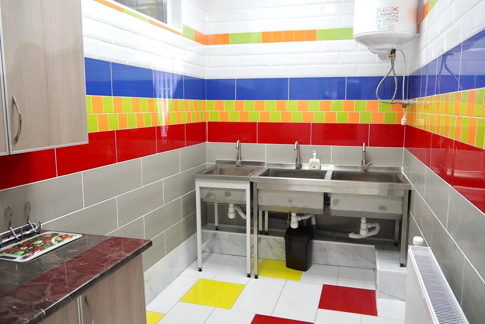 Во время ремонта подрядчик применил современные энергосберегающие технологии: утеплил фасад и цоколь, заменил системы отопления, водоснабжения, водоотвода и электроснабжения более эффективными, на первом этаже в группах устроил по новым стандартам пол с подогревом. Также оборудованы отмостки вокруг здания, возведены перегородки и подвесной потолок, выполнена внутренняя отделка, установлены межкомнатные двери, заменена сантехника.