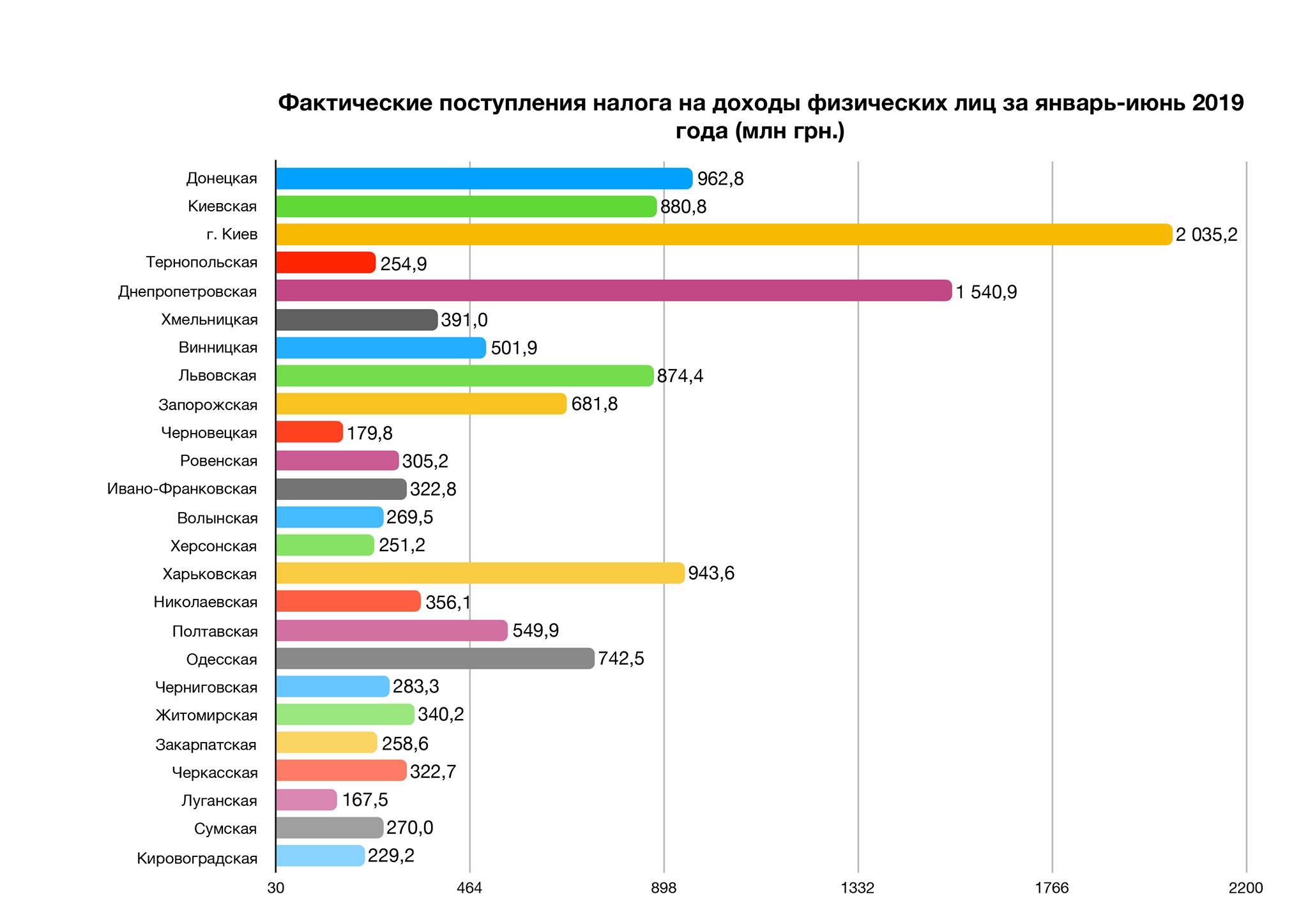 11 регионов имеют темпы прироста НДФЛ выше среднего показателя по Украине. Два региона обеспечили прирост более 24%.