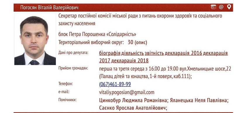 Администраторы отмечают, что Виталий Погосян является депутатом Винницкого городского совета и членом фракции "Блок Петра Порошенко". По политическим взглядам он – большой поклонник Петра Порошенко.