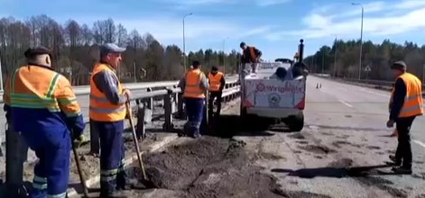 На поврежденном в результате обстрела участке трассы Киев-Чоп стартовал ямочный ремонт.