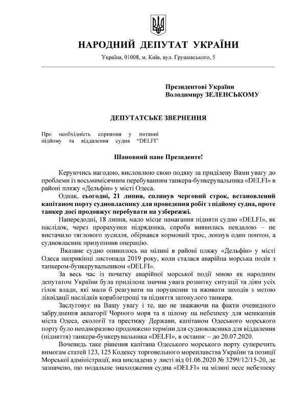 20 июля было последним сроком, когда танкер DELFI должны были убрать с берега Одессы силами судовладельца. Но этот срок истек, а танкер по-прежнему на берегу.