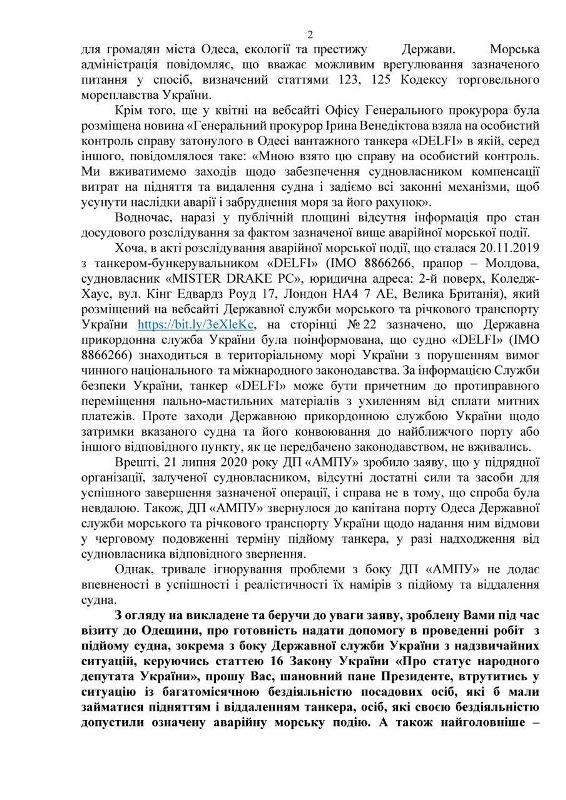 "Это общая боль одесситов, прочувствуйте ее вместе с нами. Ведь Вы – гарант наших прав", – резюмировала Татьяна Плачкова.