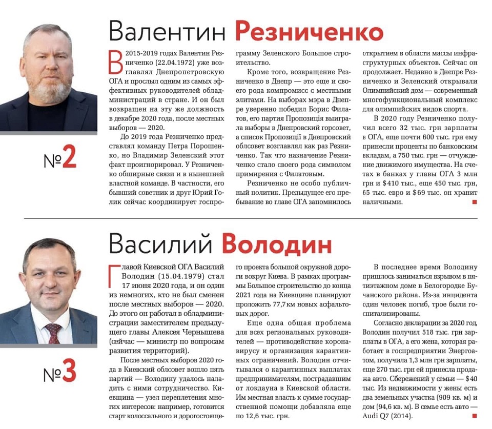 "Оценивая рейтинги глав ОГА и единственного главы столичной госадминистрации, мы исходили из допущения, что нам важны для присвоения места как экономические показатели региона, так и личный политический вес", - отмечено в статье.