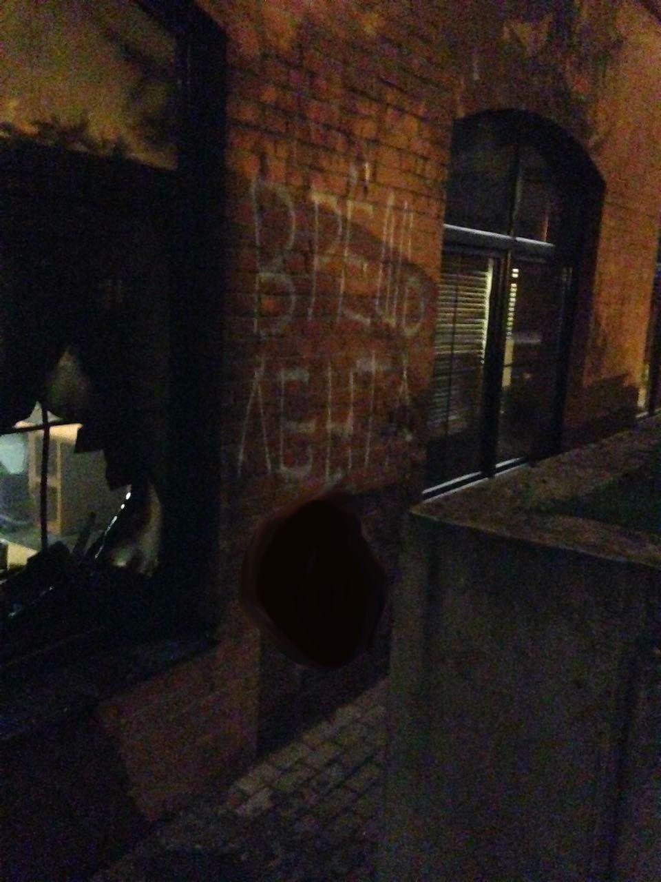 Злоумышленники устроили поджог, а также разбили стекла и разрисовали стены корпуса на Даниловской мануфактуре нацистской символикой, в том числе свастикой и солнечным крестом. На стенах также появились надписи: "Врешь Лента".