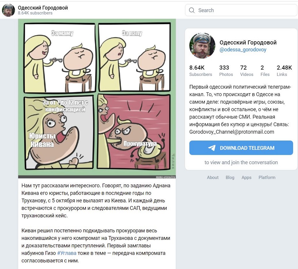 Как сообщается в канале, "Киван решил постепенно подкидывать прокурорам весь накопившийся у него компромат на Труханова с документами и доказательствами преступлений".