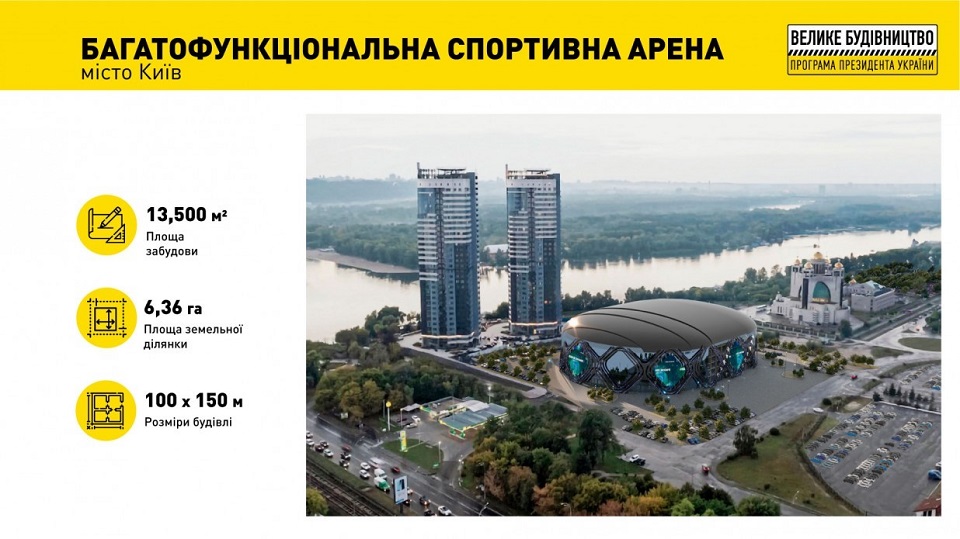 В Киеве это будет многофункциональная спортивная арена на 15 тыс. 880 зрителей на левом берегу Днепра возле Международного выставочного центра. Ее планируют ввести в эксплуатацию в декабре 2024 года, а поблизости создать обширную парковую зону.