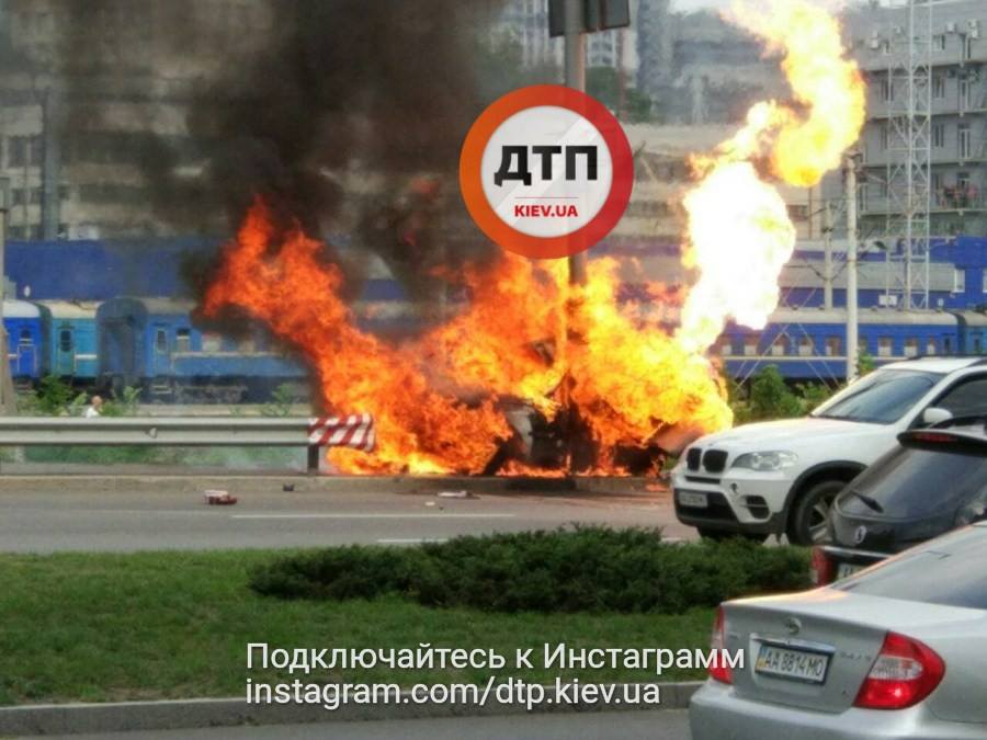 В Киеве на Саперно-Слободской улице произошло серьезное ДТП, в результате которого взорвался автомобиль.