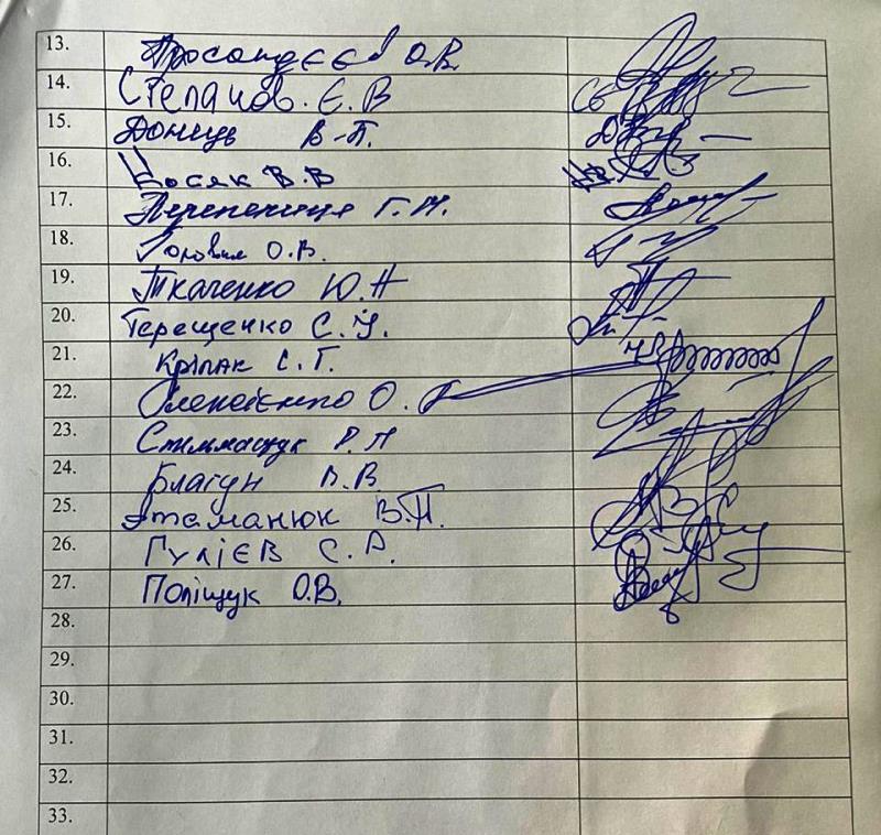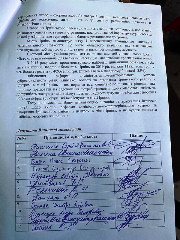 Подписи депутатов городского совета г. Вишневое за райцентр в Ирпене