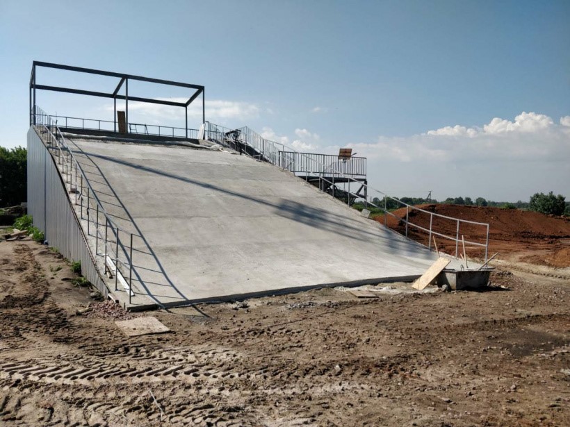 Сейчас рабочие завершают благоустройство территории: специалисты уже завершили укладку тротуарной плитки, смонтировали металлоконструкции для трибун и установили сиденья на 400 мест, установили наружное освещение с использованием солнечных батарей, а также часть ограждения. На очереди - обустройство трассы ВМХ.