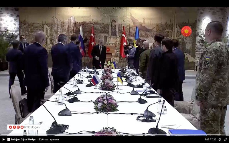 В Стамбуле во дворце Долмабахче начались переговоры российской и украинской делегаций при участии президента Турции Реджепа Тайипа Эрдогана, который уже выступил с сильной речью. Стороны ведут себя очень сдержанно.