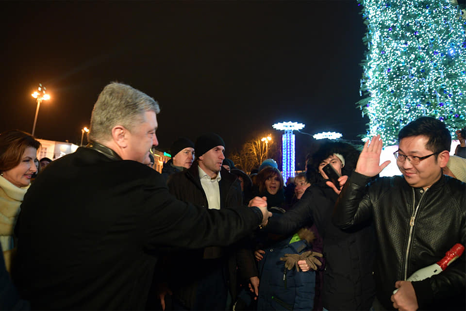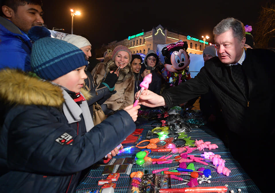 В сети появились фото президента Украины Петра Порошенко, который приехал на Софийскую площадь в Киеве на новогодние гуляния.