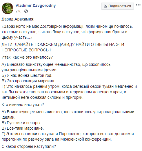Председатель фракции "Слуга народа" в Верховной Раде Давид Арахамия сделал неоднозначное заявление про нападение на воинов ВСУ на Донбассе.