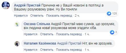 "Вы ровесник моего ребенка. Она такое не потрафила бы сказать. Совести нет у вас, не только элементарного воспитания. Оставляйте депутатство и идите учиться", "Нет слов ... мне очень обидно и просто больно, больно за людей... это издевательство. Бегите оттуда, добра вам не ждать", - пишут украинцы.