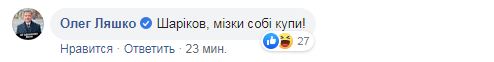 "Шариков, мозги себе купи!", - написал лидер Радикальной партии Украины Олег Ляшко.