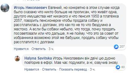 Как сообщал "Апостроф" ранее, украинцев возмутило отношение народного депутата от провластного большинства к пенсионерке, которой он посоветовал продать собаку, чтобы рассчитаться за газ. Свои комментарии пользователи оставили в Facebook под видео с прямой трансляцией 112 канала.