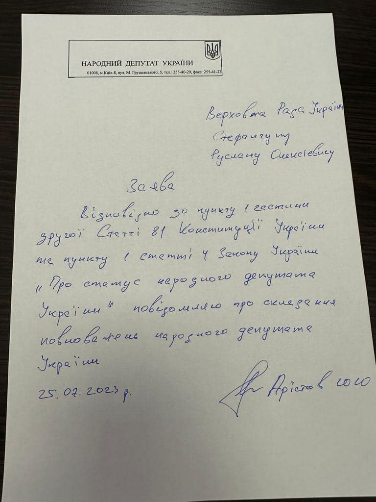 Народный депутат от "Слуги народа" Юрий Аристов, который был замечен на Мальдивах в 5-звездочном отеле, написал заявление на сложение полномочий.