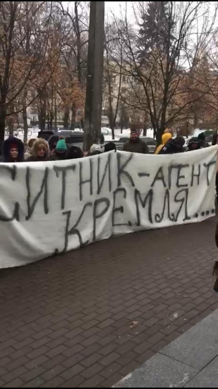 Участники акции держали в руках плакаты с надписями: "Где результаты работы НАБУ?" и "Сытник - агент Кремля".