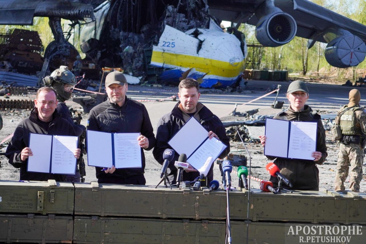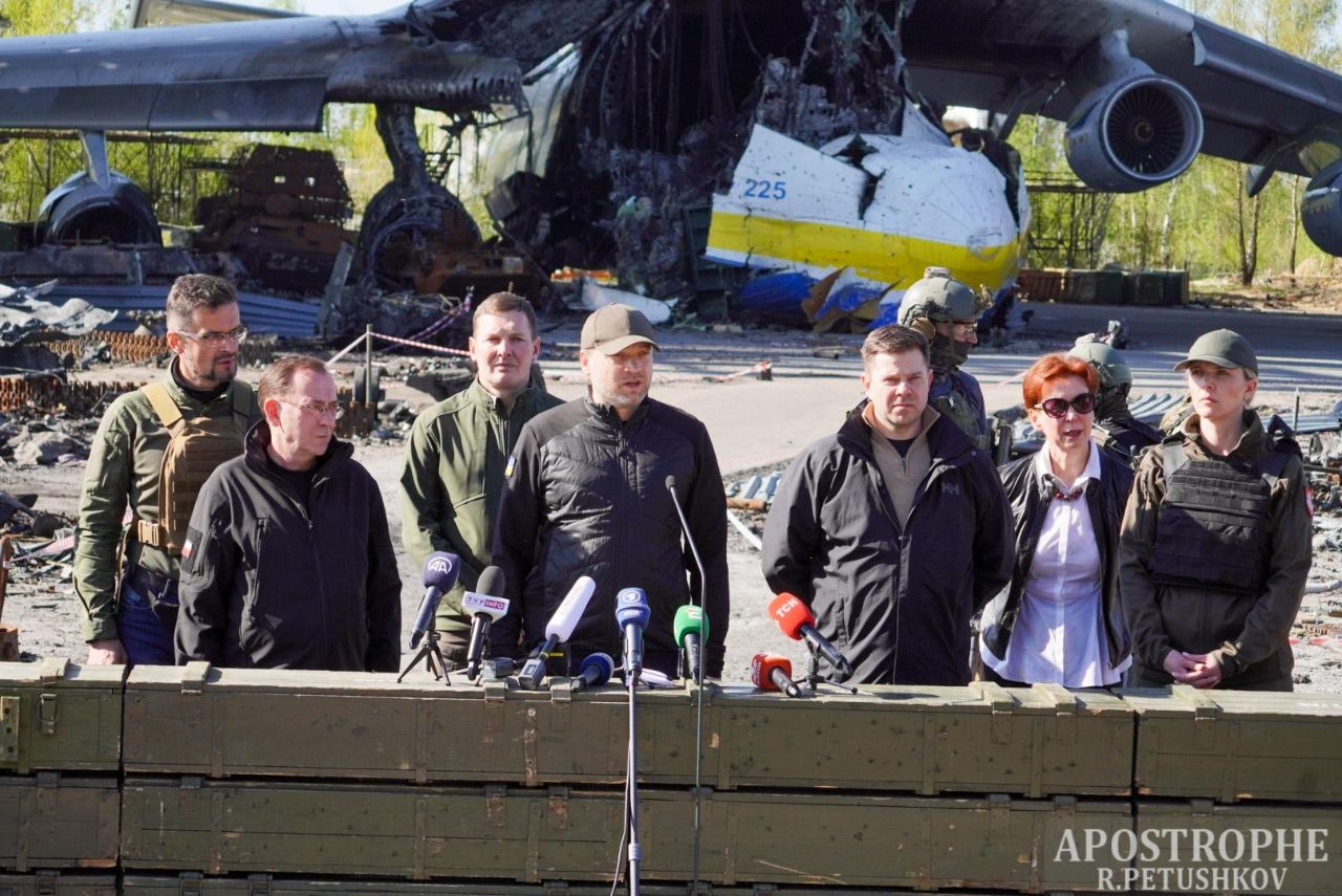 Министры осмотрели последствия разрушений аэропорта в Гостомеле, а также - изувеченную оккупантами "Мрию".