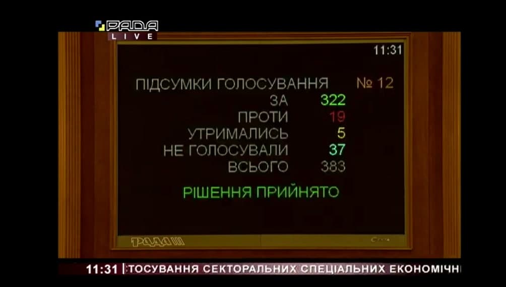 Об этом стало известно во время заседания Верховной Рады, которое транслируетсявYouTube.