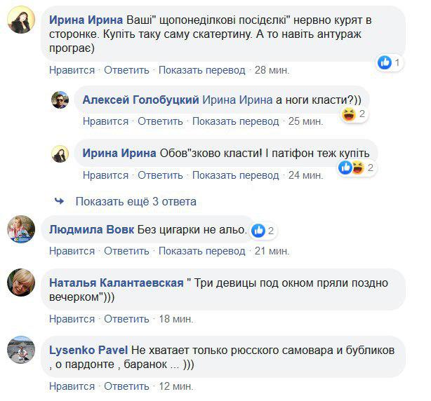 "Медведчуковский девичник под красным фонарем. А поставь Надюха немытые ноги на стол - был бы почти салун", - говорится в подписи к фото.