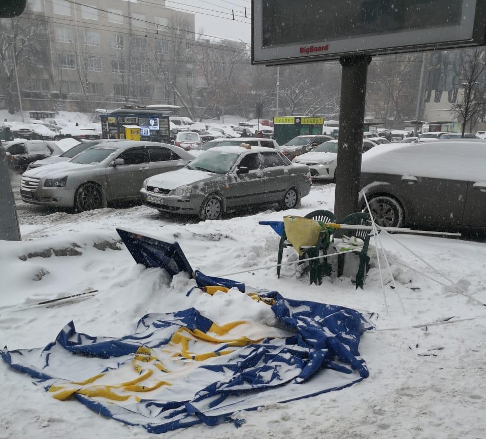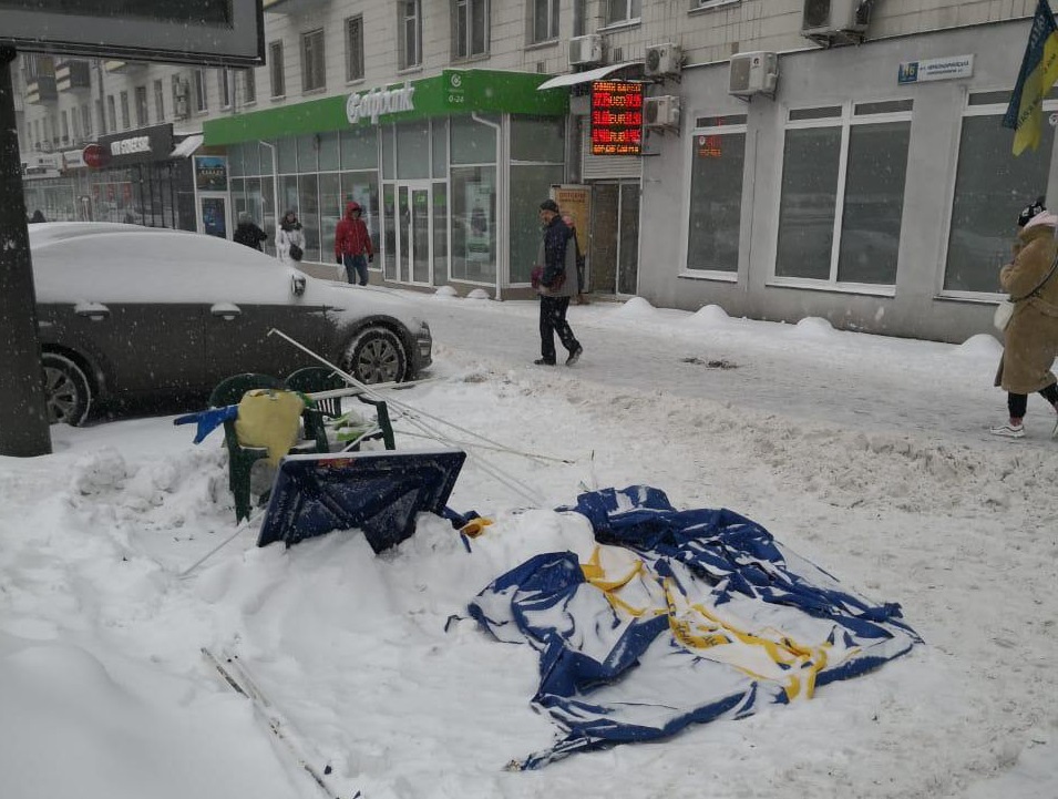 В Киеве в среду, 23 января, неизвестный напал на агитационную палатку партии "Народный фронт".