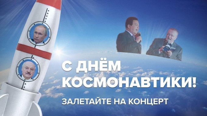 "Поздравляю с сегодняшним праздником, а Лукашенко и Путину советую прямо сейчас с космодрома Восточный стартовать на концерт Кобзона! За одно и Жириновского проведают", - пишет автор публикации.