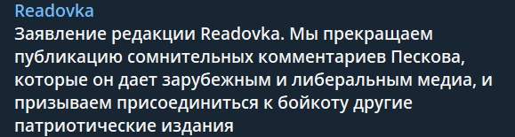 В то же время, один из кремлевских телеграм-каналов призвал к бойкоту заявлений пресс-секретаря Путина.