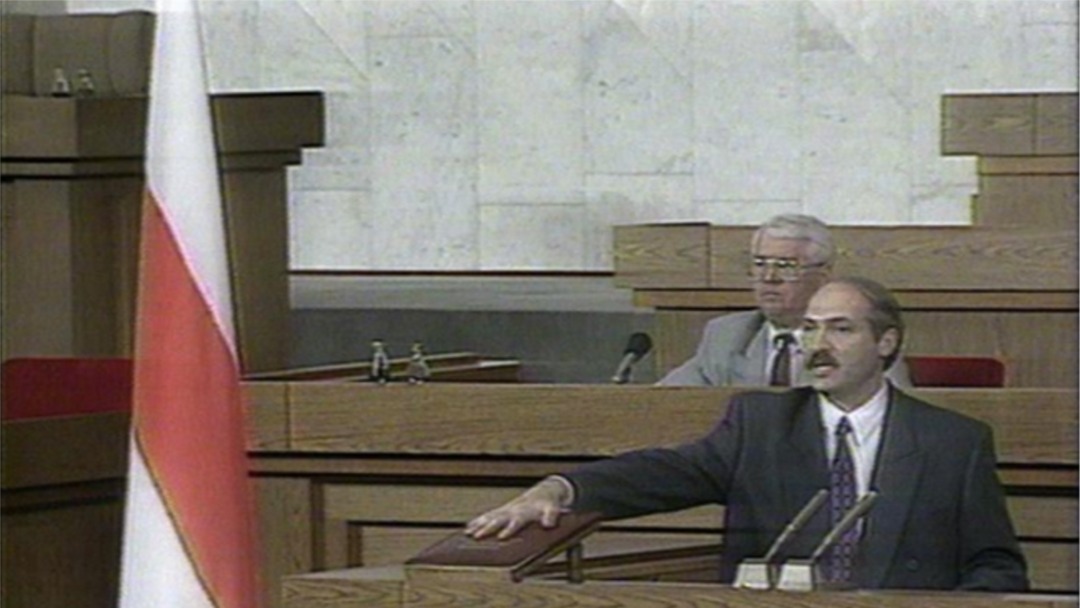 По этим флагом впервые принимал присягу в качестве президента Александр Лукашенко - в сети даже сохранились фото и видеокадры далекого уже 1994 года.