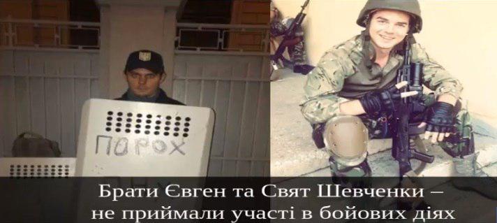 По его словам, в их числе Вано Надирадзе, "по ошибке ставший народным героем Украины"; Юрий Шевченко, который появлялся в расположении батальона только как волонтер и участия в боевых действиях не принимал; Свят Шевченко, охранник нардепа Семена Семенченко, на которого зарегистрирована фирма "Донбасс-Охрана"; Евгений Шевченко, "личный летописец Семенченко".