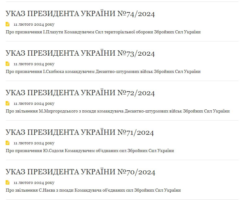 Президент Украины Владимир Зеленский заменил командующего объединенными силами Вооруженных Сил, командующего Сухопутными войсками, командующего Десантно-штурмовыми войсками и командующего Силами территориальной обороны.