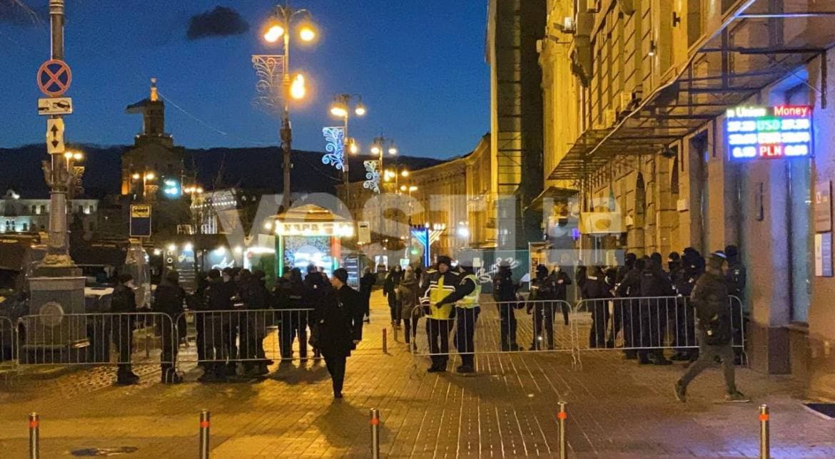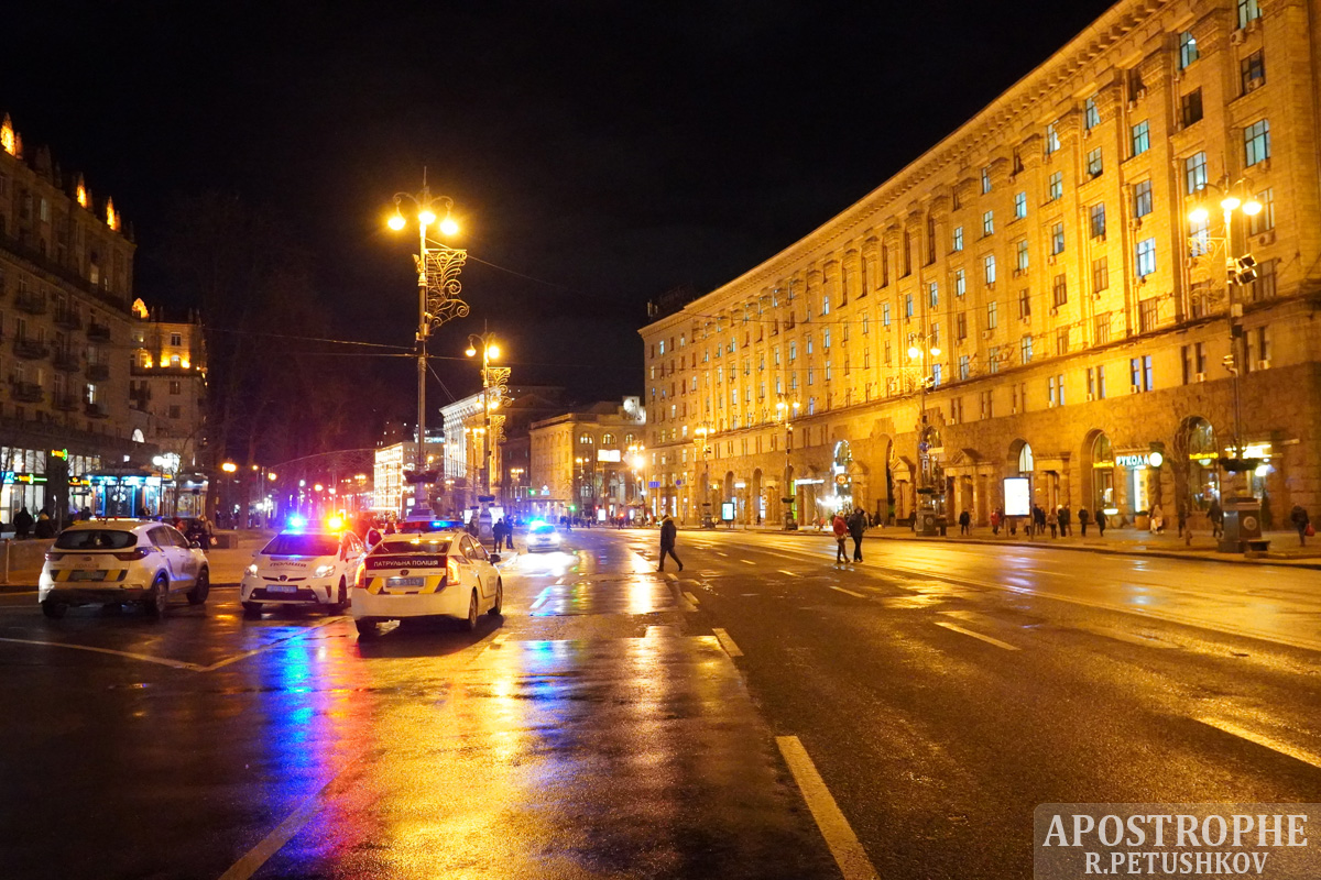 17:30 За несколько часов до проведения вече сотрудники Нацполиции перекрыли движение по Крещатику от улицы Богдана Хмельницкого до Европейской площади в обоих направлениях.