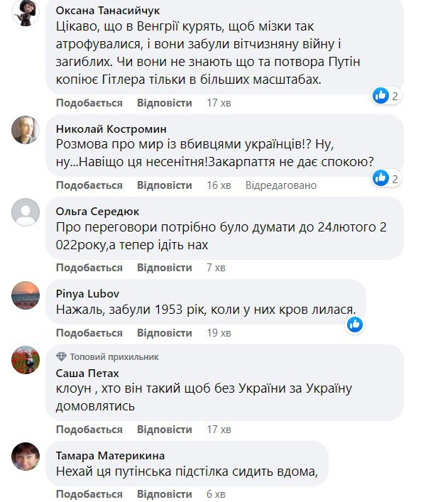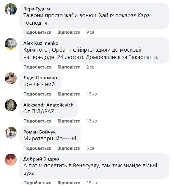 В то же время украинцы в комментариях прошлись и по Сийярто, и по его "начальнику" Виктору Орбану и по самой Венгрии.