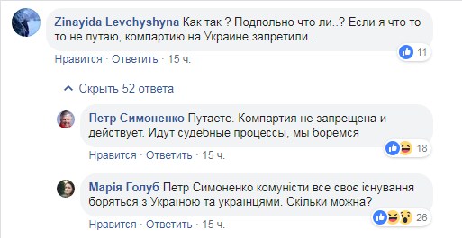 Комментаторы удивились, почему КПУ до сих пор продолжает деятельность, назвав политика "живым мертвецом". Также Симоненко припомнили преступления советского режима и голосование его политсилы за диктаторские законы 16 января 2014 года.