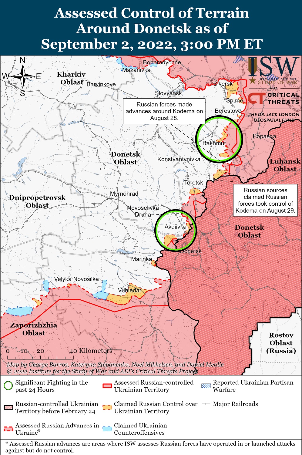 С началом сумерек противник активизировался на Бахмутском, Авдеевском, Новопавловском и Запорожском направлениях. Силам обороны удалось успешно отразить атаки врага в районах населенных пунктов Бахмутское, Кодема, Зайцево, Авдеевка, Марьинка и Времовка.