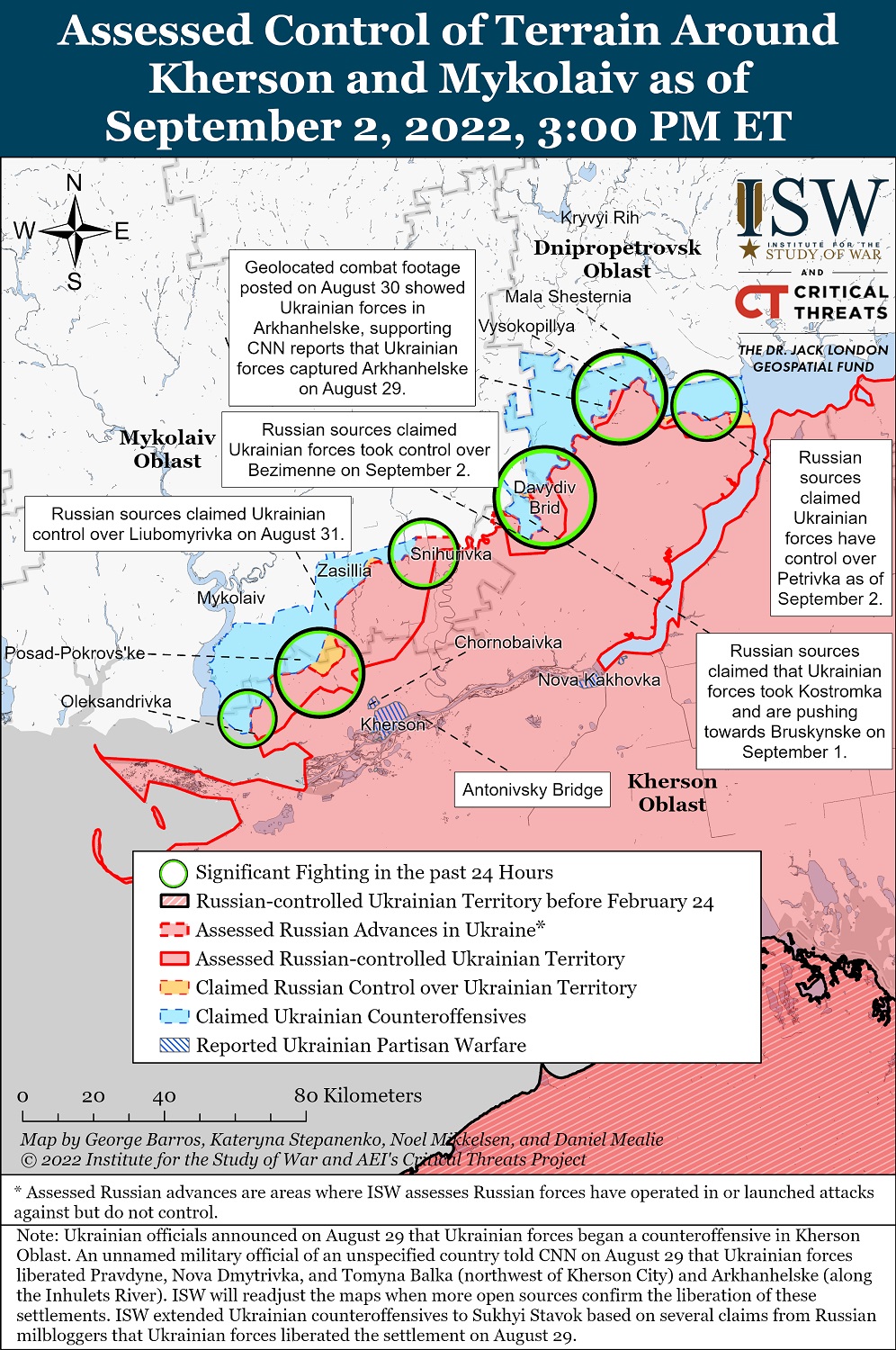 За прошлые сутки враг нанес 6 ракетных и более 20 авиационных ударов по военным и гражданским объектам на территории нашего государства. В частности, пострадали населенные пункты Полтавка, Пришиб, Победа, Крещеновка, Осокоровка и Белогорье.