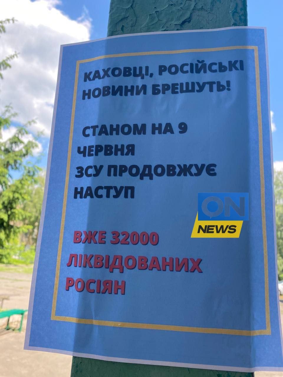 08:50 В захваченной врагом Каховке украинские патриоты информируют местное население об успехах украинской армии и потерях врага.