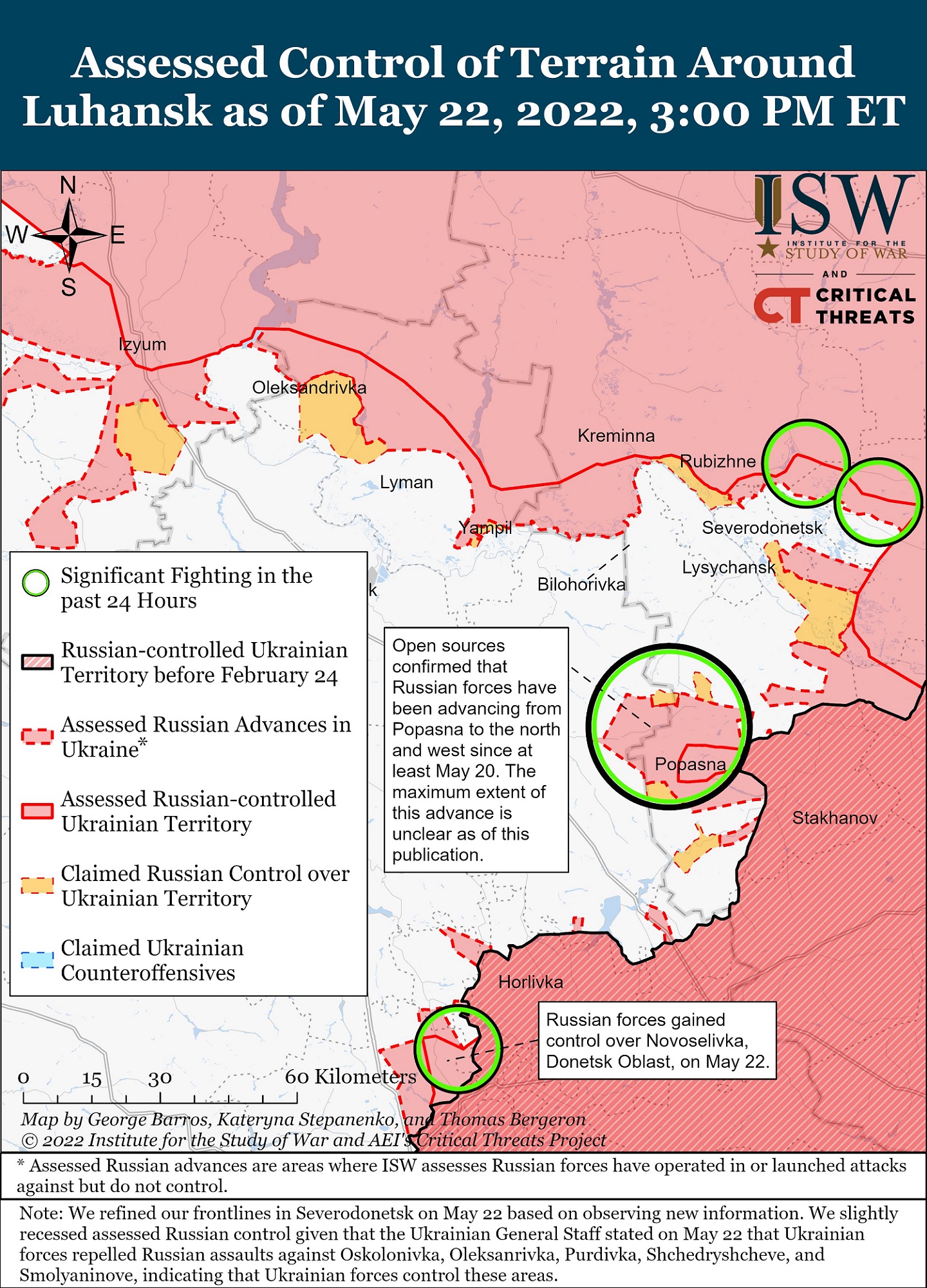 На Северодонецком направлении враг сосредоточил усилия в направлении населенного пункта Северодонецк. Вел штурмовые действия в районе Тошковки.