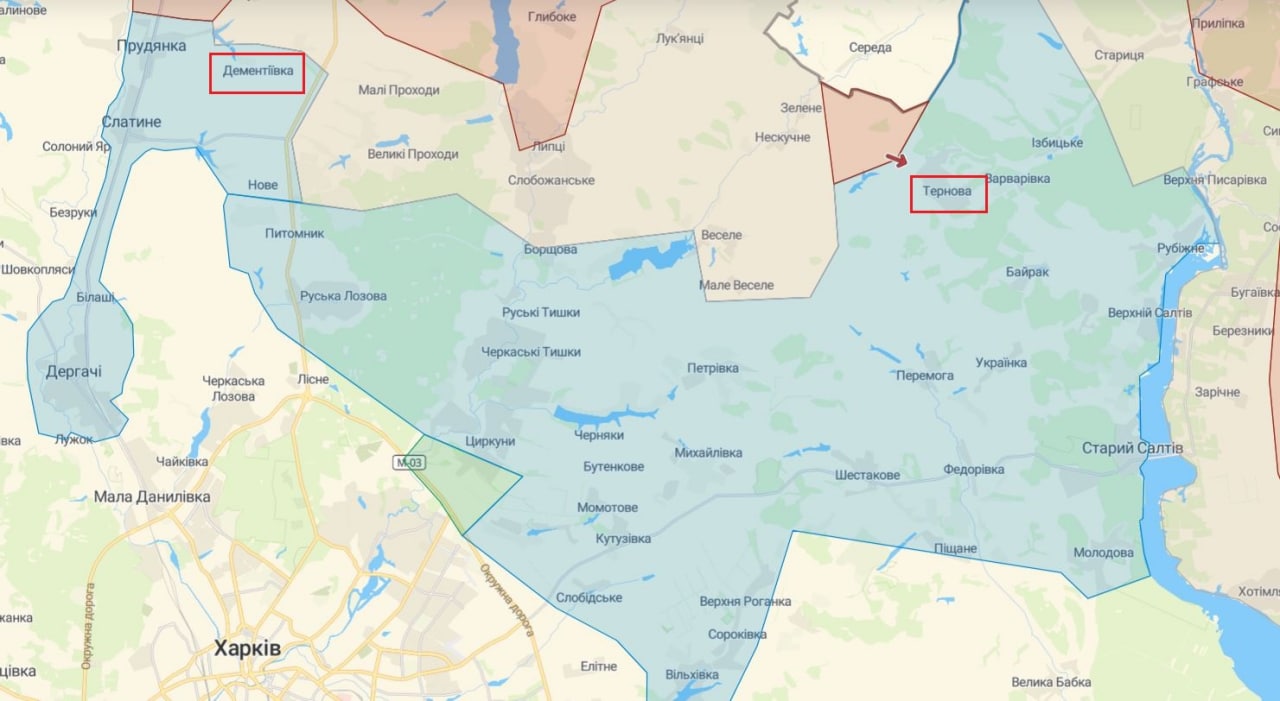 В среду, 18 мая, украинские защитники освободили от российских оккупантов населенный пункт Дементиевка в Харьковской области. В настоящее время идет бой за село Тернова.