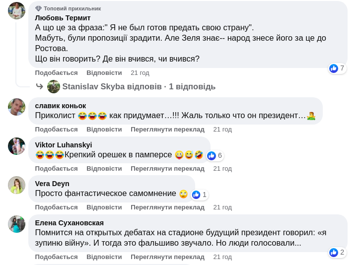 Президент Украины Владимир Зеленский заявил, что в России его считают "крепким орешком, который трудно расколоть", поскольку в начале своего правления он пытался "по-соседски поговорить с РФ" о войне на Донбассе, но не собирался предавать свою страну. Он отметил, что для него большая честь быть главой государства.