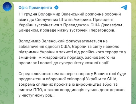 После визита в Латинскую Америку, президент Украины Владимир Зеленский 11 декабря начнет рабочий визит в США. Лидер Украины встретится с президентом Джозефом Байденом, проведет ряд встреч и переговоров.