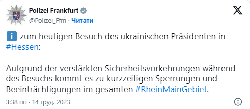 Президент Украины прилетел во Франкфурт-на-Майне. По данным местной полиции во всем регионе приняты повышенные меры безопасности и перекрыт ряд дорог.