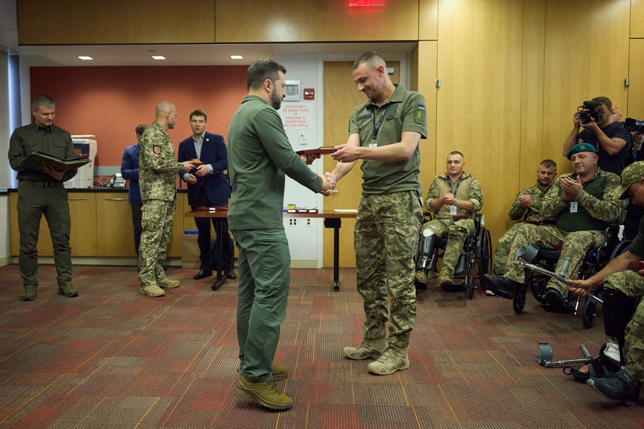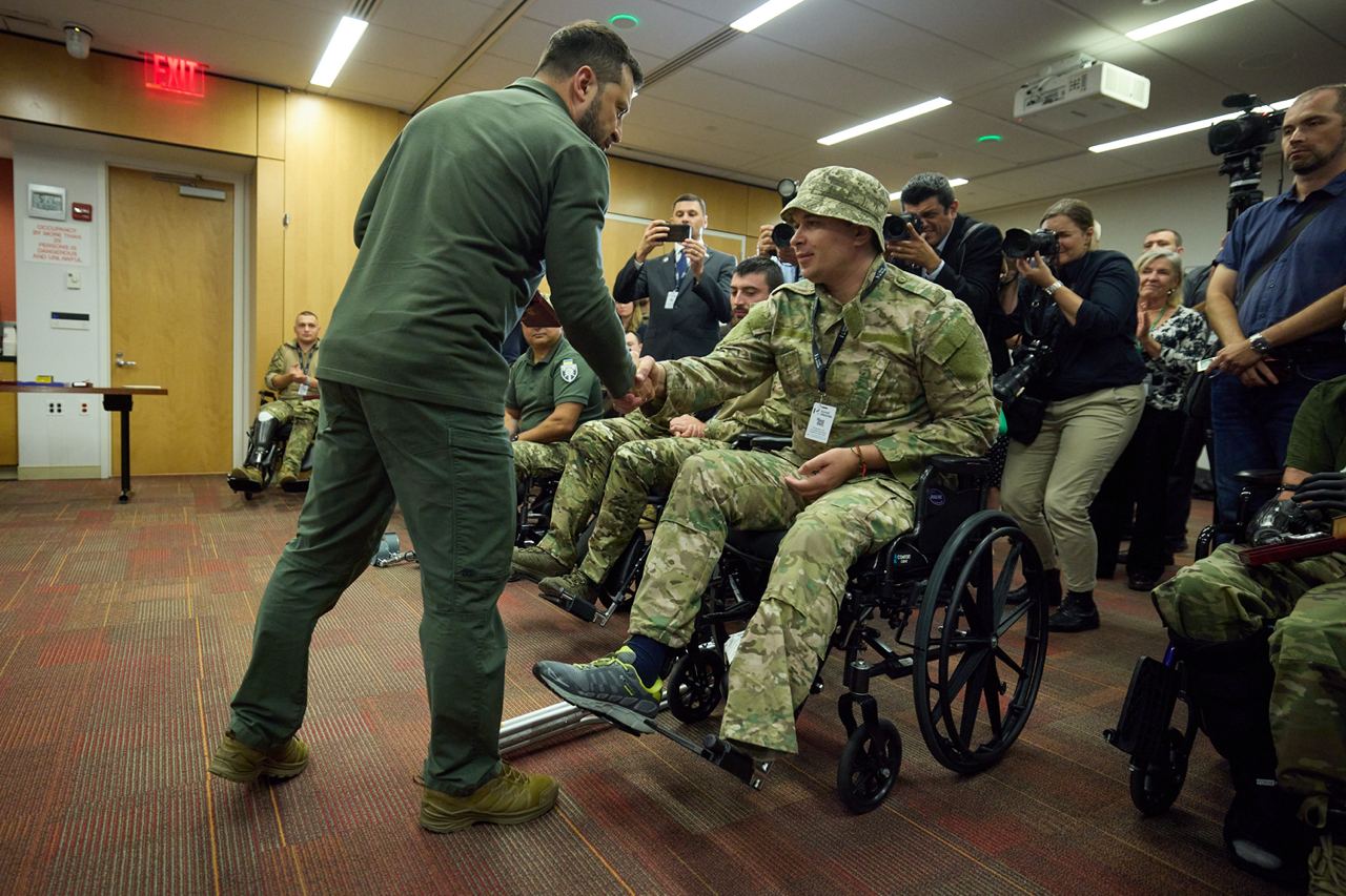 Зеленский посетил клинику Staten Island University Hospital, где проходят лечение и реабилитацию раненые украинские военнослужащие.