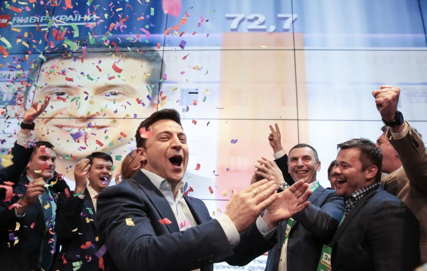 Во втором туре президентской гонки 21 апреля 2019 года Владимир Зеленский победил действующего в то время президента Украины Петра Порошенко "со счетом" 73.22% (13 541 528 избирателей) против 24.45% (4 522 450 избирателей)