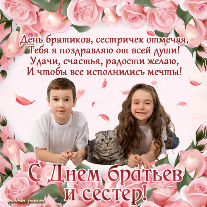 Поздравляем от души с прекрасным праздником, Днем братьев и сестер! Сестры и братья – это не просто наши родные люди, это наша опора и поддержка в тяжелую минуту, наши самые верные и преданные друзья, наша связь с миром детства и родительским домом. Чаще встречайтесь с родными, берегите друг друга, будьте здоровы и счастливы.